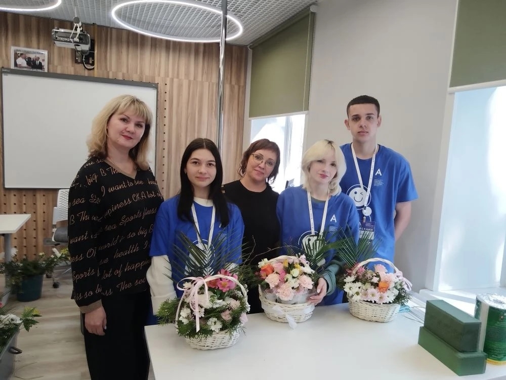 Ребята-флористы показали искусство создания флористических композиций из живых цветов в корзине на неорганической основе для срезанных растений - «Оазис».
